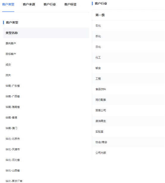 客户分类:广义客户,上游、下游、同行、对手、合作伙伴,标签体系分类客户,同时还可按照公司要求自定义客户基本信息和业务信息关键点,细分客户行业(矿山、冶金、建材、电站等)电机制造类行业,设置数据访问权限,确保客户信息安全,人员离职,客户资源、跟进记录、订单历史自动留存。