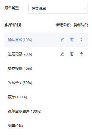 跟单阶段:设置跟单阶段,制定节点标准,实时记录拜访时间、拜访次数、沟通详情、客户设备核心需求、定制化要求等内容;管理销售过程,跟进时间、进展情况一目了然,有效避免漏单、错单;实时监控销售漏斗各阶段转化率,精准定位问题环节,及时调整策略。